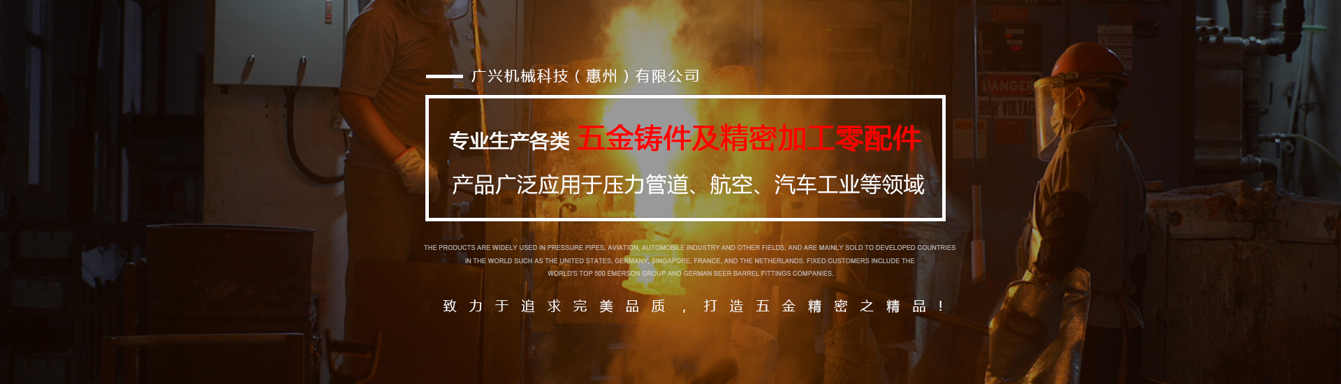 公司專業(yè)生產(chǎn)各類五金鑄件及精密加工零配件,可熔煉材質(zhì)為全系列不銹鋼及碳鋼,主要生產(chǎn)材質(zhì)有304、316、316L、17-4、430、409等,年生產(chǎn)各種不銹鋼鑄件1000余噸。產(chǎn)品廣泛應(yīng)用于壓力管道、航空、汽車(chē)工業(yè)等領(lǐng)域,主要銷(xiāo)往美國(guó)、德國(guó)、新加坡、法國(guó)、荷蘭等世界發(fā)達(dá)國(guó)家,固定客戶有世界500強(qiáng)艾默生集團(tuán)及德國(guó)啤酒桶配件公司。